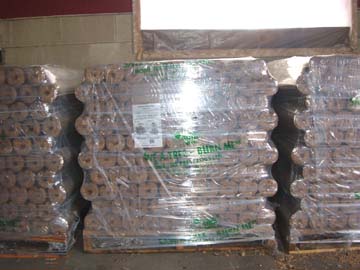 Stacking and storing your wood needs to no longer be a problem with the reduced amount of space needed by Home Fire Prest Logs. At 380 logs per pallet equalling one ton, storing your firelogs takes very little room. Store them in a dry location free from any source of moisture.